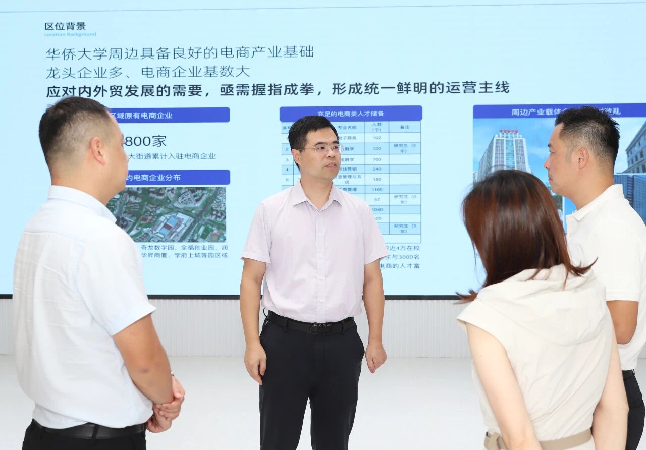 林清伏指出,要抢抓跨境电商发展新机遇,凝聚多方合力,统筹区域发展,持续打造生态链、服务链、人才链、金融链“四链融合”的环华侨大学电商生态圈,不断提升服务体系和发展能级,为全区经济高质量发展注入强劲动能。要突出招商实效,瞄准龙头企业和产业链上下游,吸引集聚一批优质企业,加快构建跨境电商全产业链生态。要立足辖区侨资源丰富、周边院校多等优势,培育更多跨境电商领域复合型、应用型人才。要把握政策导向,做实项目策划和包装,积极向上争取资金支持。要夯实要素保障,加快推进活力街区等项目建设,持续优化营商环境,打造宜居宜业、产城融合的现代化产业社区。