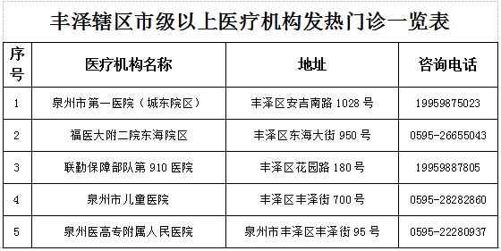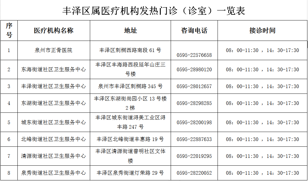 速看!5家+新增8家!丰泽公布辖区发热门诊(诊室)名单