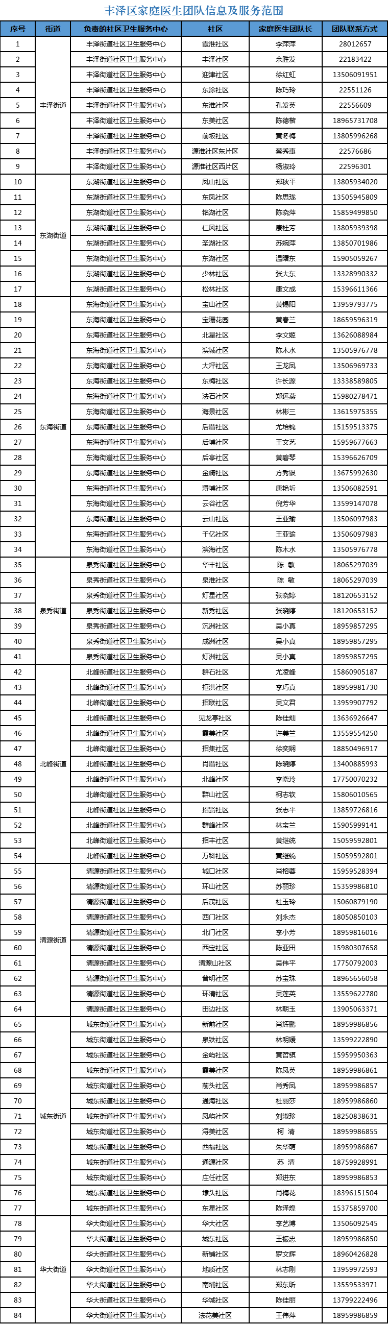 为切实当好“社区健康守门人”,更好地帮助和指导辖区广大居民做好自我健康管理,及时解决遇到的常见健康问题,引导广大居民做好自我防护,betvictor中国 卫生健康局向社会公布本区84个家庭医生团队信息及服务范围。如居民有相关健康问题,请拨打家庭医生团队联系电话进行咨询。