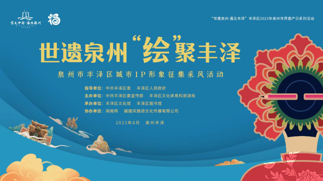 8月2日至4日,国内知名高校名师、设计师、文化名家、媒体大V等将汇聚泉州丰泽,开展城市IP形象征集采风及座谈会,找寻丰泽城市IP设计灵感,为丰泽城市IP设计开发建言献策。