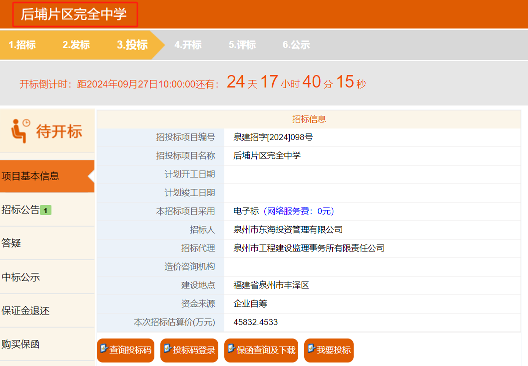 近期,泉州公共资源交易信息网发布《后埔片区完全中学》施工总承包招标公告。