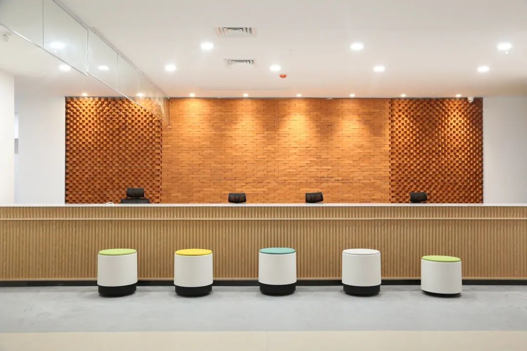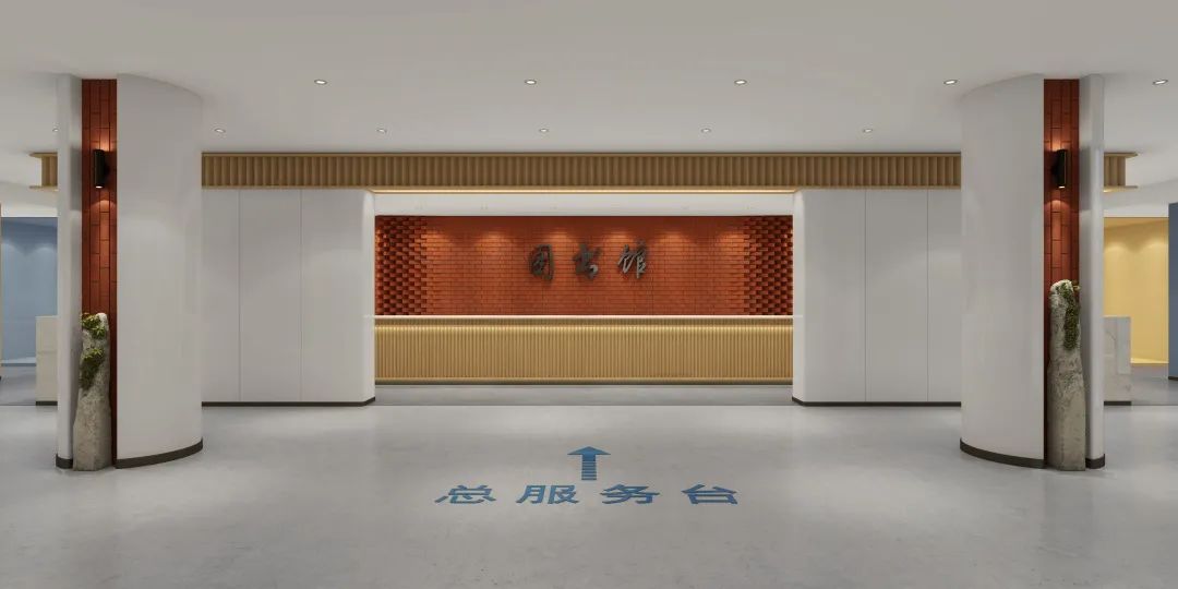 进入安检入口,将看到总服务台红砖装饰的背景墙,富有闽南建筑气息。