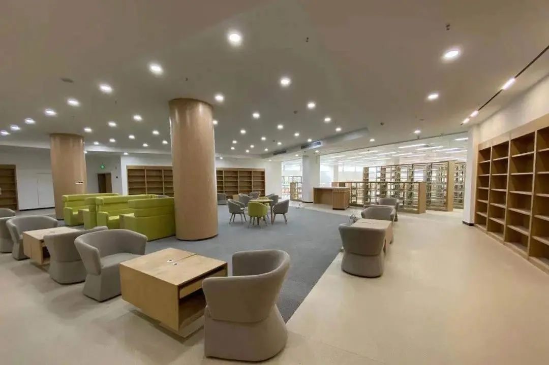 目前,图书馆工程主体已进入收尾验收环节,新增部分小广场进入施工筹备阶段。图书上架、智能化设备调试、室内软装及氛围布置已在进行中,力争2021年元月期间正式开馆。