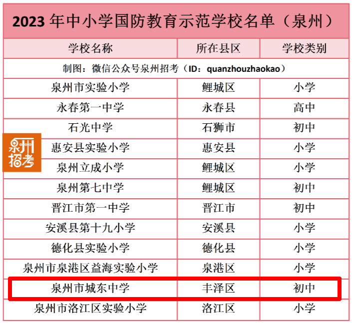 泉州12所学校上榜